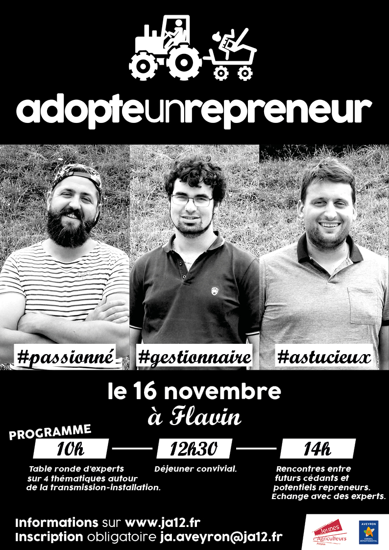 Pour favoriser l’installation de jeunes agriculteurs et la transmission d’exploitation en Aveyron, les JA ont créé Adopte un repreneur. Une journée dédiée à la transmission-installation.